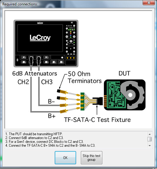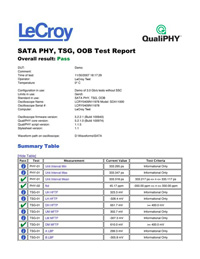 The QualiPHY SATA software option for LeCroy oscilloscopes provides an extensive set of validation/verification and debug tools written in accordance with SATA Gen1 (1.5 Gb/s), SATA Gen2 (3.0 Gb/s) and SATA Gen3 (6.0 Gb/s) electrical specification. QPHY-SATA covers the interoperability tests defined by the SATA-IO including all the PHY General Requirements (PHY), PHY Transmitted Signal Requirements (TSG), and PHY OOB Requirements (OOB) for internal SATA products as well as eSATA products. These capabilities make QPHY-SATA an all-inclusive automated test suite that meets the requirements for Gen1 (1.5 Gb/s), Gen2 (3.0 Gb/s) and Gen3 (6.0 Gb/s) Serial ATA trans mitter compliance testing.