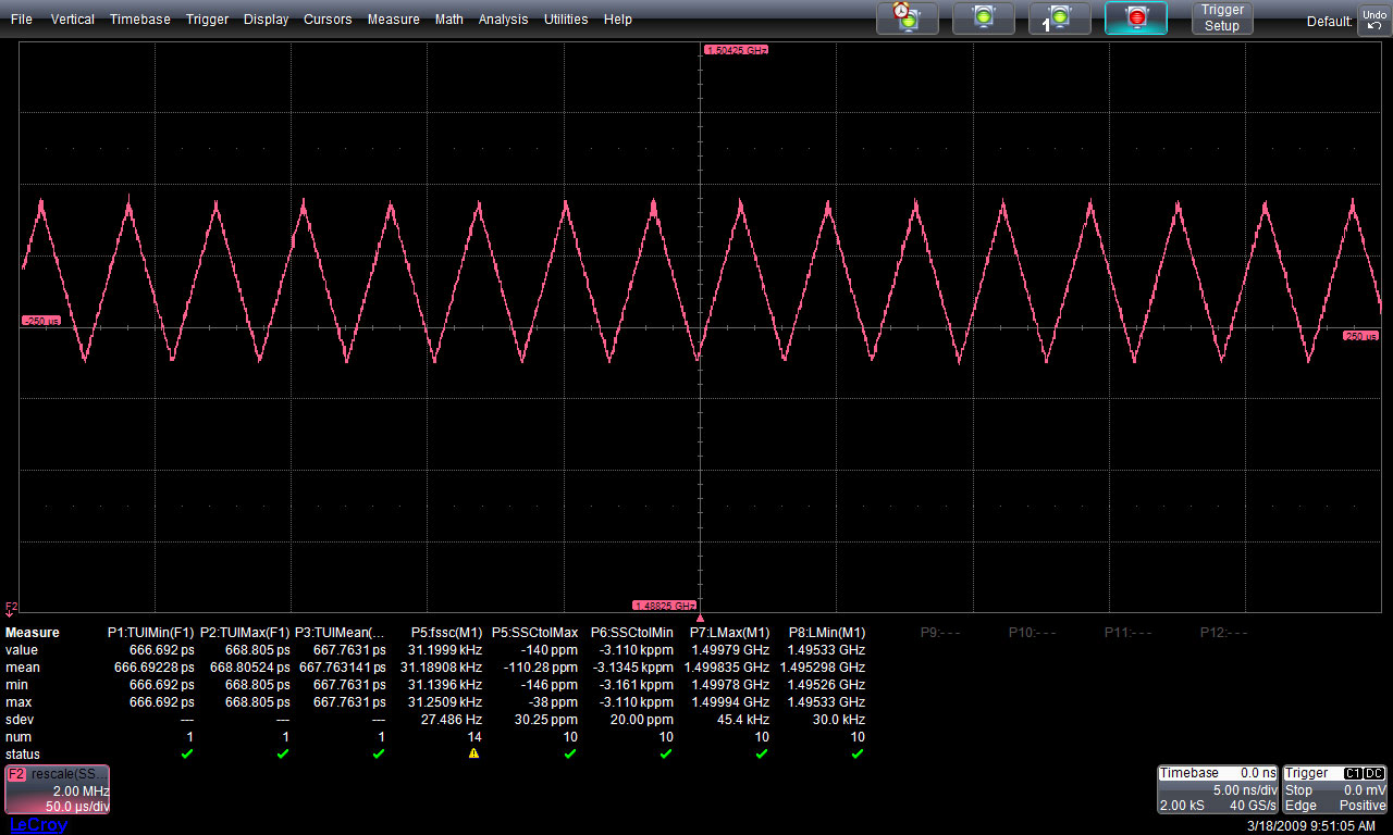 Spread Spectrum Clock (SSC) validation requires long memory and specialized analysis functions. LeCroy is the only manufacturer that can precisely track SSC profiles through multiple cycles in real-time.