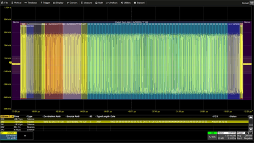 Turn the oscilloscope into a protocol analyzer with a tabular display of decoded information. Customize the table to