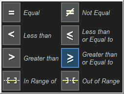 The trigger permits a conditional (<. <=, =, >, >=, <>, inside a range, outside a range) setup for