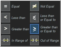 The trigger permits a conditional (<. <=, =, >, >=, <>, inside a range, outside a range) setup for